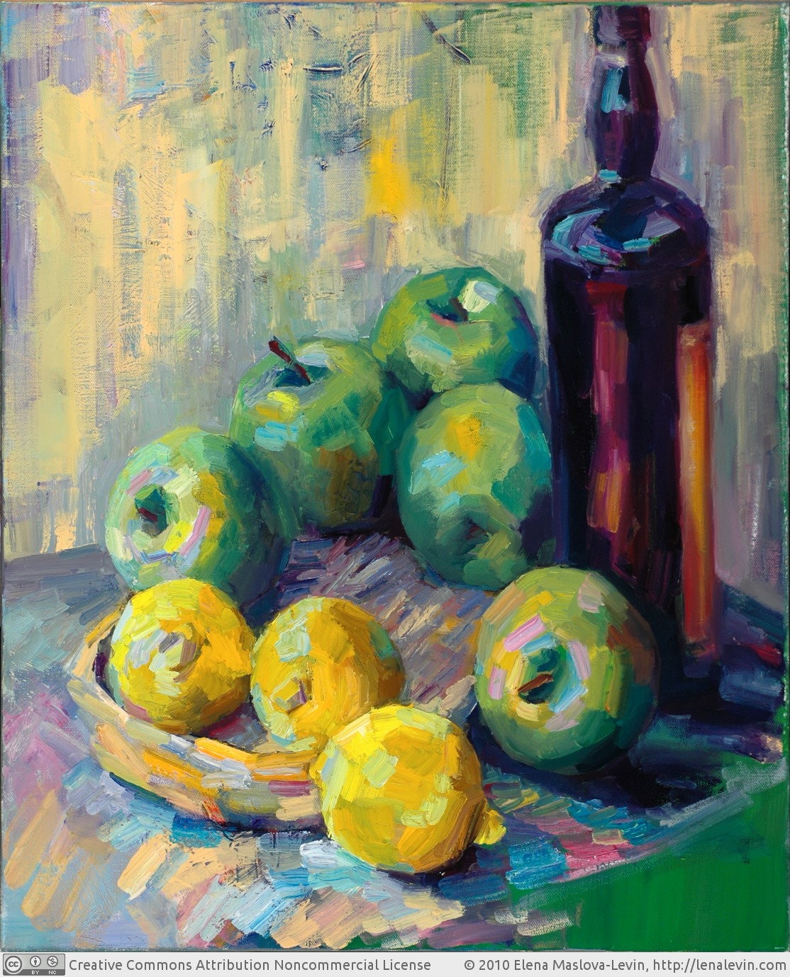 Still life with green apples and lemons. 24"×20" (61×50.8cm). Oil on canvas. January